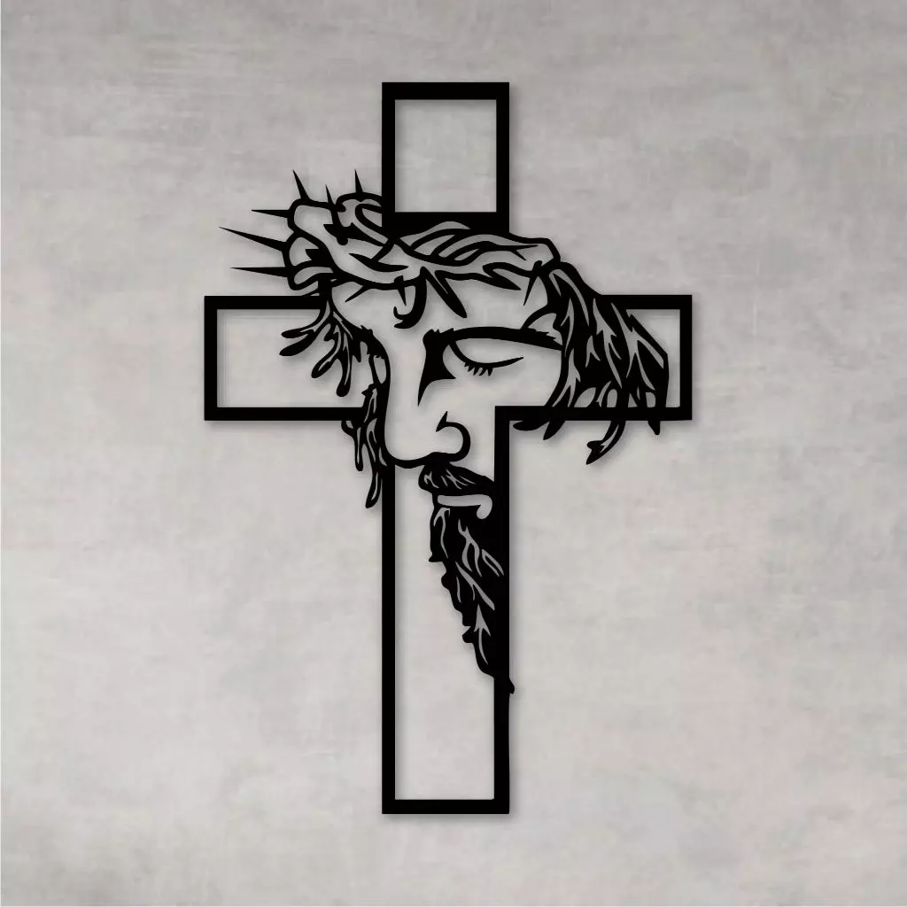 O recorte detalhado destaca a imagem de Jesus sobre a cruz, criando um efeito moderno e elegante na parede. Produzido em MDF de alta qualidade, o quadro é leve, resistente e fácil de instalar, perfeito para compor salas, quartos, espaços de oração ou ambientes religiosos.